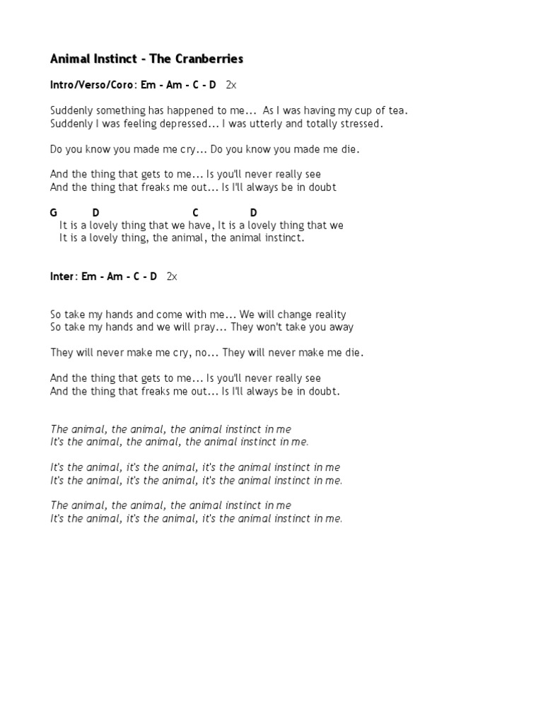 Animal instinct by cranberries chords.